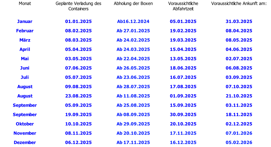 Binger Balikbayan Service e.K. Unsere geplanten Container  2025 06.02.2025 Die Anmeldung der Boxen sollte vor dem Abholtermin erfolgen.